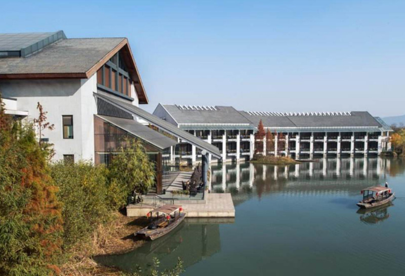 杭州西溪賓館為中國首家濕地文化主題酒店,坐落于西溪國家濕地公園西北部,北臨文二西路,西靠五常港。酒店設計融合了中國元素及西溪的自然生態元素。